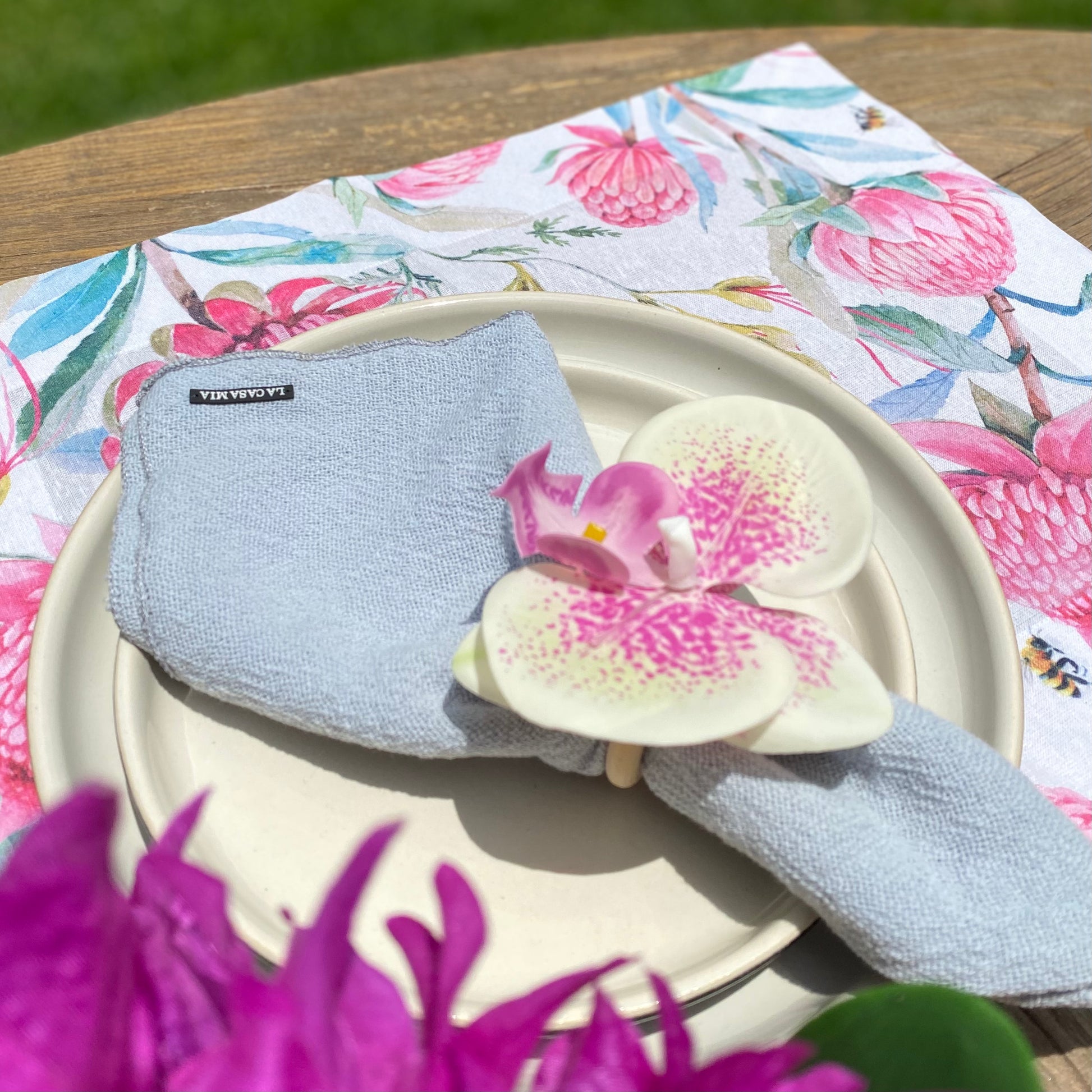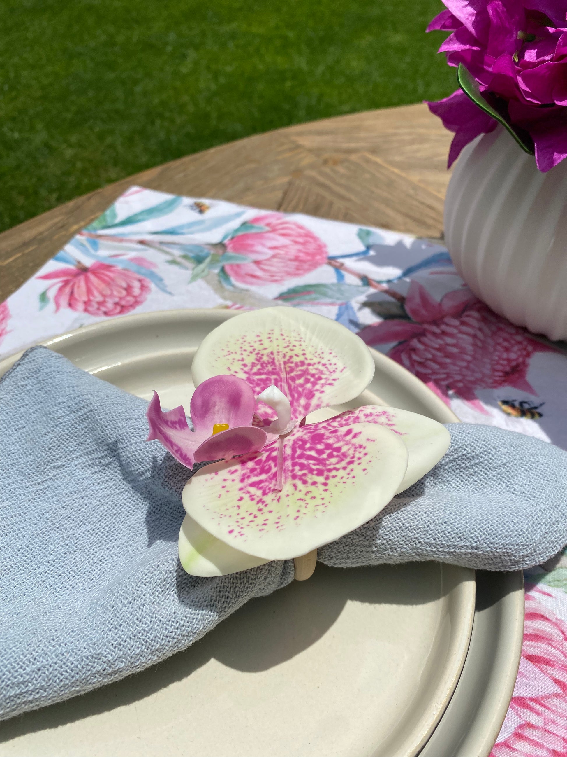 Anillo para servilleta “orquídea con lunares rosas”