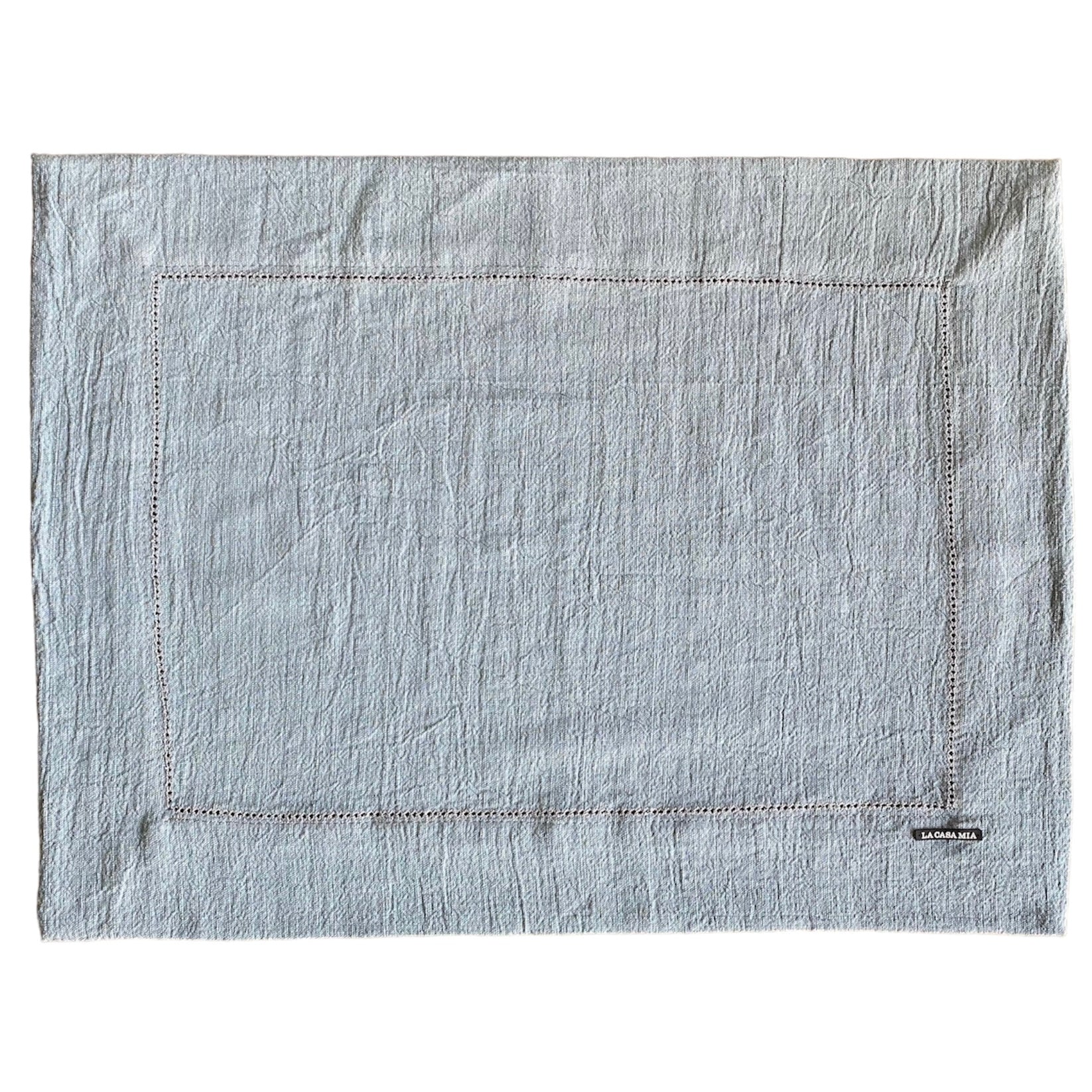 Individuales de lino con deshilado, no olvides combinarlos con sus servilletas de lino a juego.