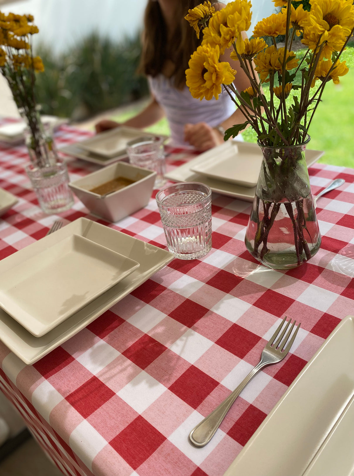 Mantel “esencial de cuadros en rojo”