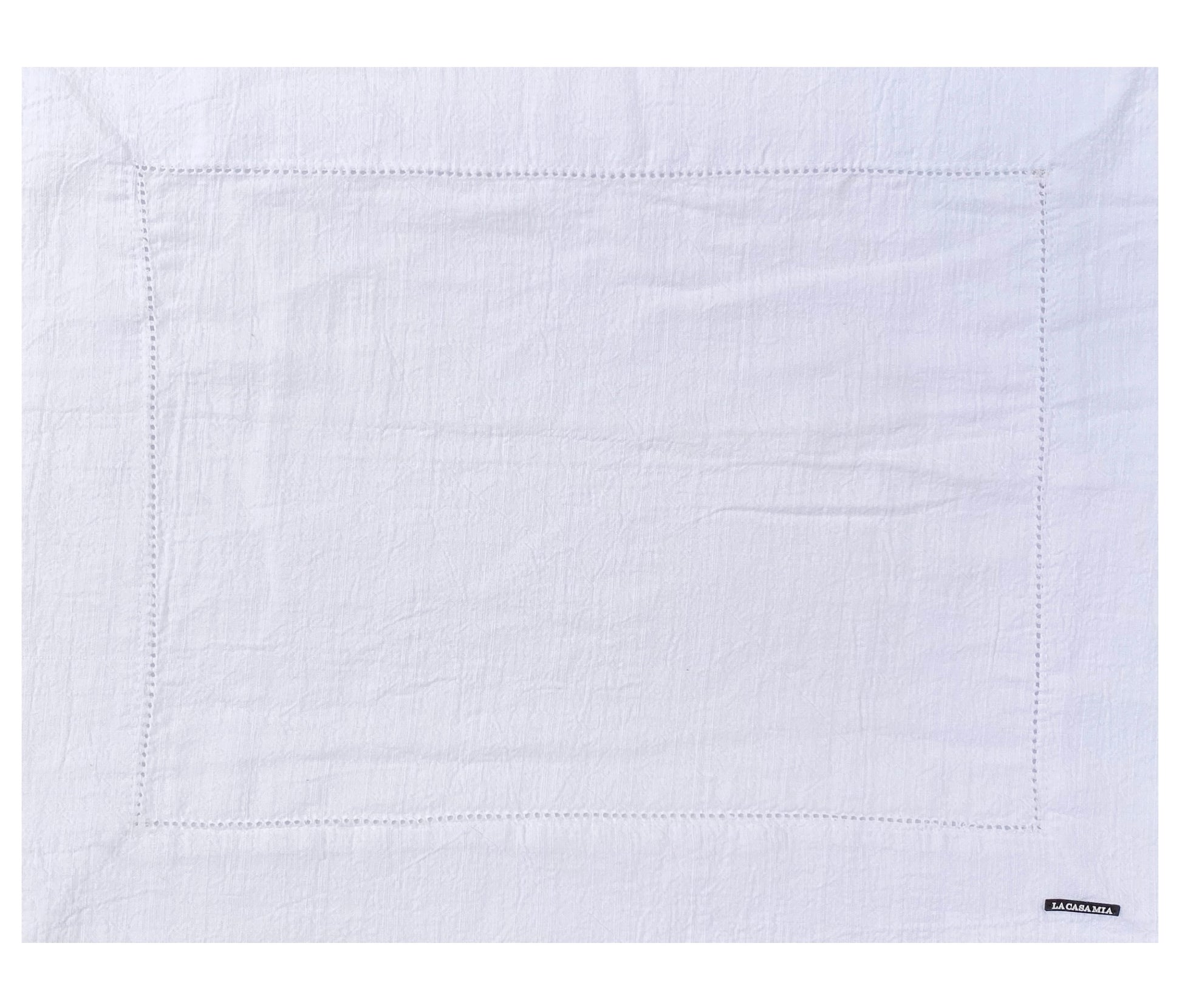 Individual de lino con deshilado en “blanco”