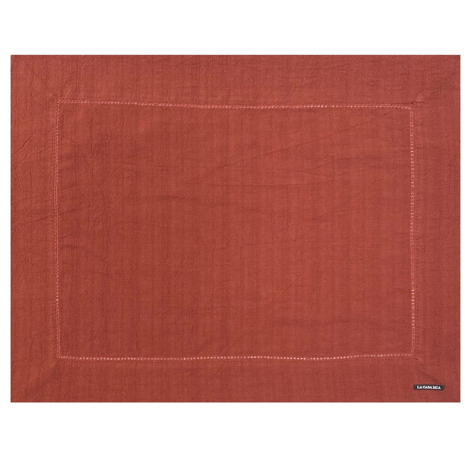 Individual de lino con deshilado en “rust”