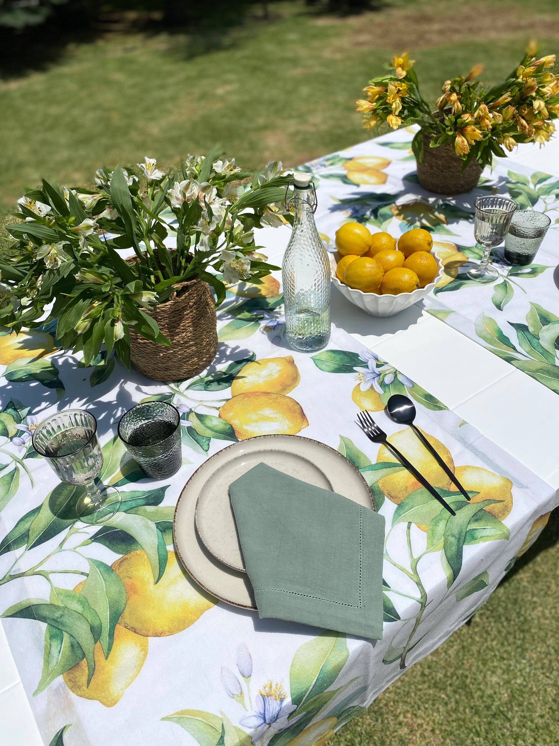Servilleta de lino con deshilado en “sage”